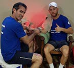 Like every tennis player, Dudi Sela, #1-ranked tennis player in Israel, suffers from arm pain, because the arm carries a heavy load during a tennis match. Another common condition among tennis players is tennis elbow, where due to the heavy load and continuous repetitive movements the elbow joint and the surrounding tissue become inflamed, which, in turn, causes severe pain. For the pain relief and joint healing therapy, Dudi Sela is treated with a Solio Alfa Plus device. The treatment is performed by Tamir, a senior physiotherapist at Medix.